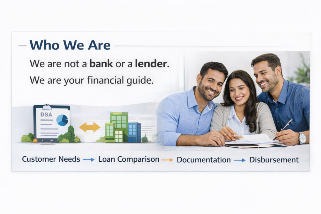 As a DSA, our role is to understand your requirements, analyze your profile, compare offers from multiple banks, and recommend the most suitable loan option. From documentation to final disbursement, we manage the entire process so you can focus on what matters most.